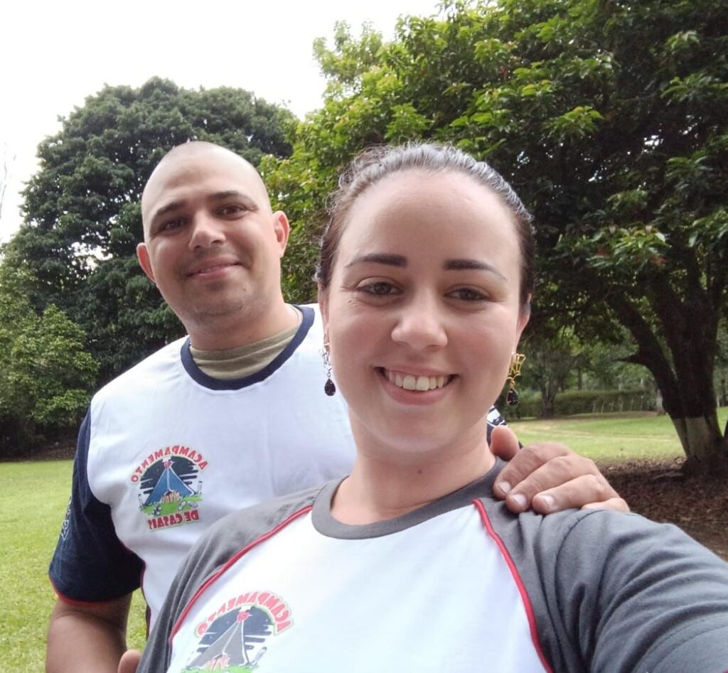 A palavra é gratidão! Já há alguns anos somos chamados a ir ao Acampamento, mas Deus quis que fosse nesse. E que bênção!!! Somos casados desde 2014 e só conseguimos nos casar através de uma autorização do Bispo, pois descobrimos nas vésperas do casamento que o Allan foi batizado em uma igreja que já não existe mais (Igreja apostólica brasileira). Em 2018 ele fez a preparação e se batizou, fez primeira comunhão e crisma, mas desde 2019 não recebia mais a comunhão, pois não aceitava se confessar. No sábado a palestra falou tanto ao meu coração quanto ao do meu esposo e, faltando poucos minutos para a missa, ele pediu ao Padre a confissão, sem que eu soubesse, e no momento da comunhão foi junto comigo. Pensei até que ele estivesse indo por conta da palestra, mas ele recebeu Jesus novamente. Ver a mudança no olhar do meu esposo nesses dias me fez renovar a certeza de que juntos vamos superar cada desafio!